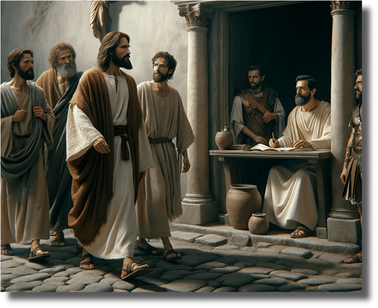Figure 1 – Jesus passing the tax office and noticing Levi.